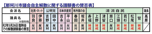 ただ、請願の主たる目的が今年の8月9日に市議会議員選挙を行うための議会の自主解散である以上は、今回の請願には反対という判断をいたしております。